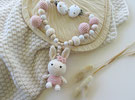 Kinderwagenkette Hase creme/rosegold/weiss/natur